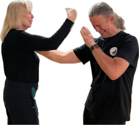 Après avoir atteint un certain niveau en « poussant les mains », nous pouvons alors commencer à apprendre les techniques d'autodéfense. Les étudiants trouveront que l'application martiale des techniques appliquées est souvent très différente de la façon dont elles sont exécutées dans la forme des mains. Ceci est dû au fait que les mouvements martiaux ont été modifiés pour pouvoir être interprétés dans cette forme-là. Il est impératif que nous pratiquions avec un partenaire si nous voulons développer notre capacité à utiliser ces techniques de manière défensive et efficace. Plus notre pratique est réaliste, plus nous serons en situation de nous défendre de manière résolue.