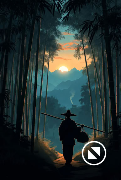 Dans la forêt de bambous vert sombre, au temple